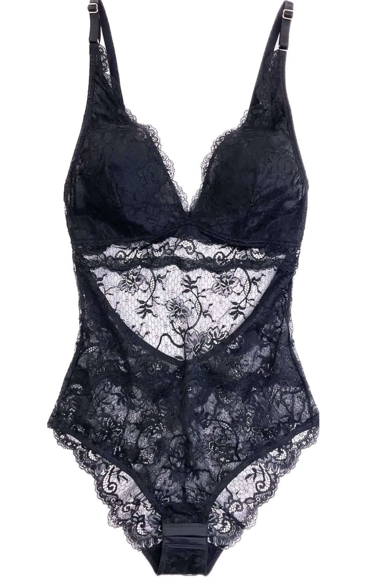 - The Samantha Chang All Lace Amour Bodysuit in Dark/Navy Black