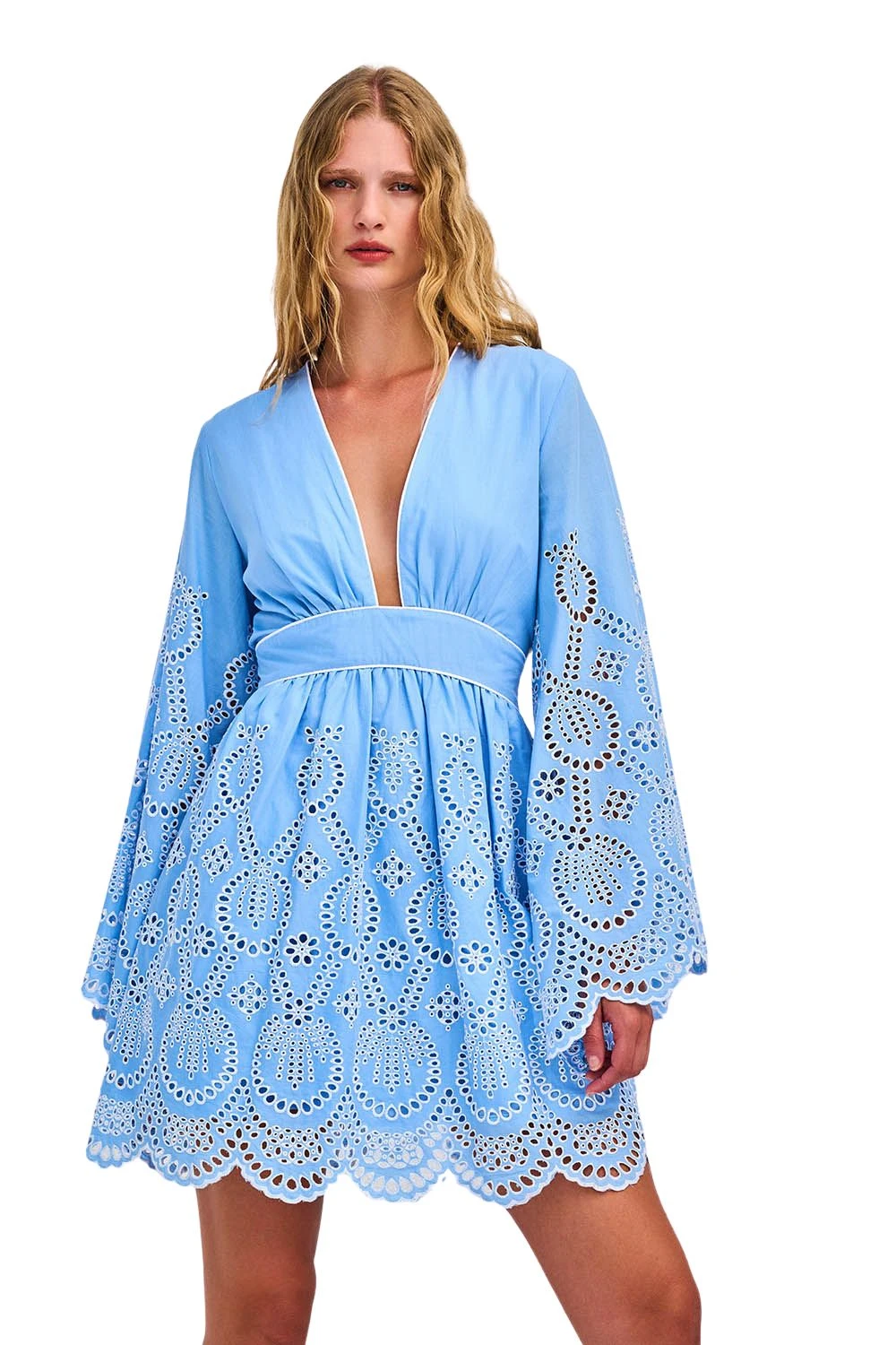 Elevate your style with the Lace Long Sleeve Mini Dress in Blue. This enchanting piece effortlessly combines sophistication and allure, featuring intricate lace detailing that exudes timeless elegance. The long sleeves provide a hint of modesty, while the mini length keeps the look fresh and modern. The flattering blue hue complements any skin tone, making it a versatile choice for various occasions. Whether you’re attending a special event or enjoying a night out with friends, this dress is sure to turn heads and make a statement. Pair it with heels and statement jewelry for a glamorous look, or dress it down with flats for a more casual vibe. With its chic design and feminine charm, the Lace Long Sleeve Mini Dress in Blue is a must-have addition to your wardrobe.