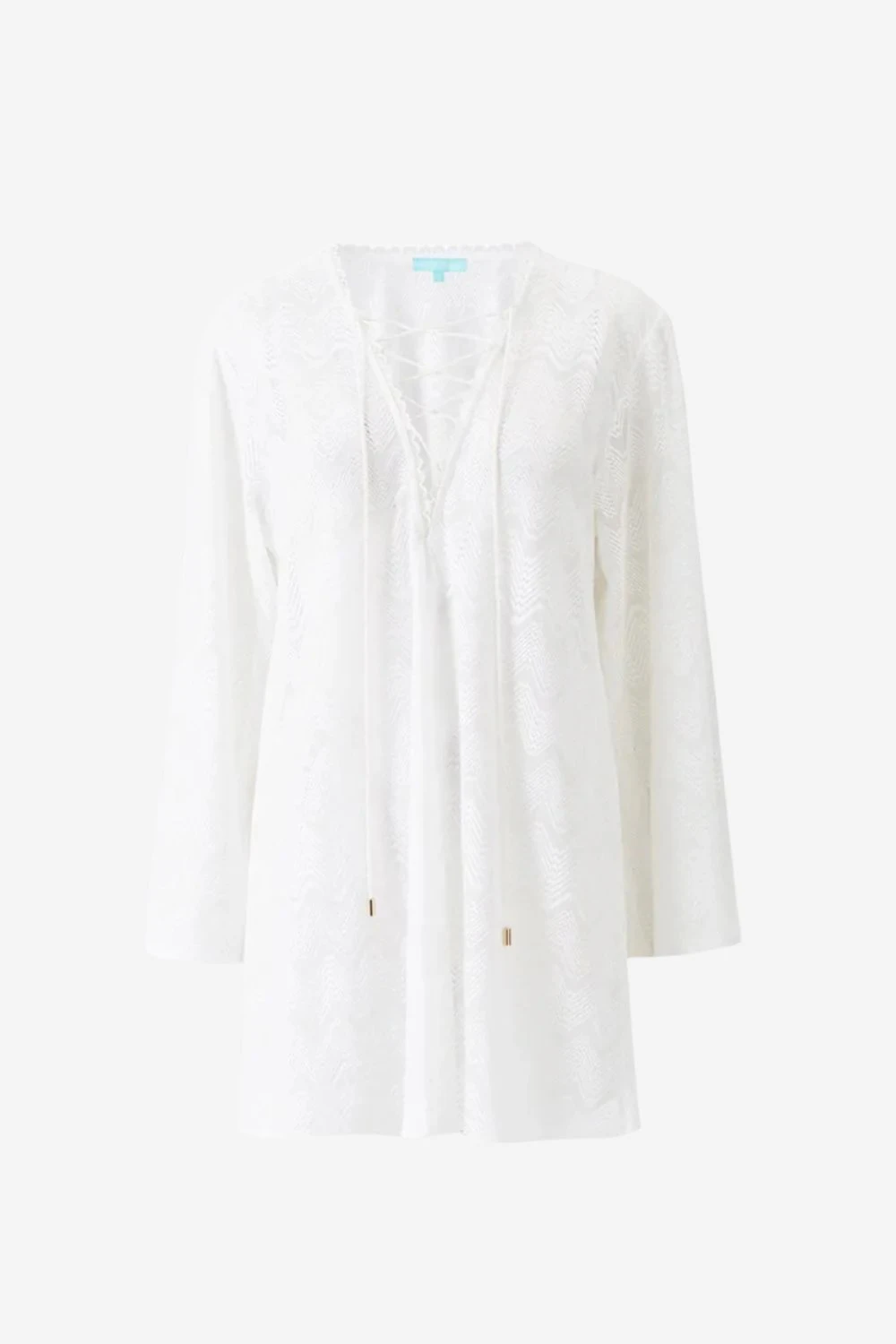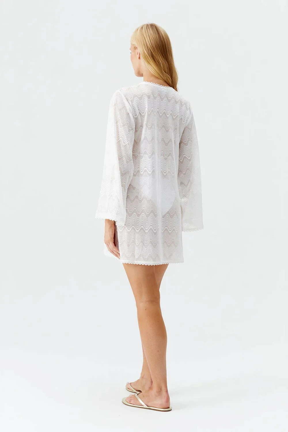 As you pack for your next beach getaway, be sure to include the Keira Kaftan. Chic and fresh in classic White, this style is crafted from a luxe, semi-sheer, wavy patterned knitted fabric.